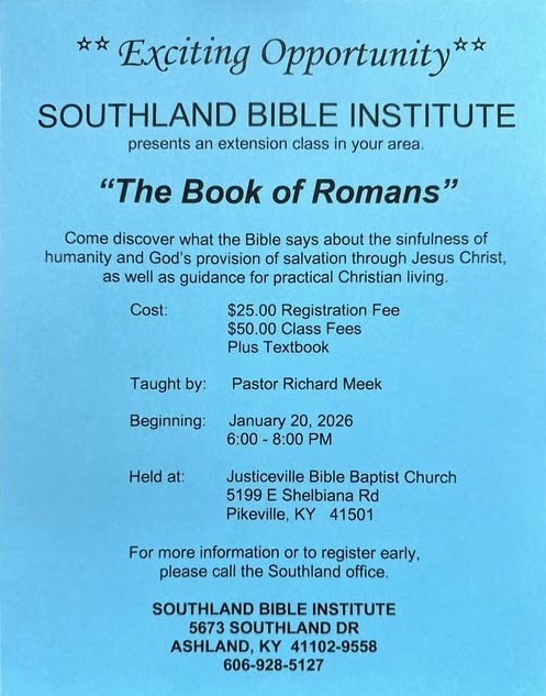 The Purpose of Southland Bible Institute Over the last eighty-two years of ministry, the purpose of Southland Bible Institute has not changed. Our school was founded in 1942 to help supply the area of Appalachia with trained "native" leadership. We have been actively engaged in doing just that. We specialize in the academic subjects which center on the Word of God. Our courses are designed to give each student proficiency in the study of the Bible by actual study of the Bible. Constant contact with the Word of God gives the student a working knowledge of God's truth. The wisdom of this approach is recognized by many missions, schools, and churches which seek our Bible Institute graduates because of the servant's heart that is developed. Practical Training In conjunction with the Bible courses, students study and practice the skills necessary to effectively communicate the truth of God's Word. In this practical training, we are preparing students for Christian ministries in various settings and locations. Our alumni are found in numerous foreign countries and across our own nation, including the hills of Appalachia. Students have ample time and opportunity to practice the principles they learn in the classroom as they participate in "real life" situations. This immediate carry over is extremely important if effective training is to take place. Leadership Development Training in this form develops leadership abilities in many of the students and prepares them for such ministries as planting churches, directing mission organizations and camps, and working in local churches and missions. Other students go on to further their education, honing the basic skills learned at Southland and deeply appreciate the stability learned in the Bible Institute setting. |